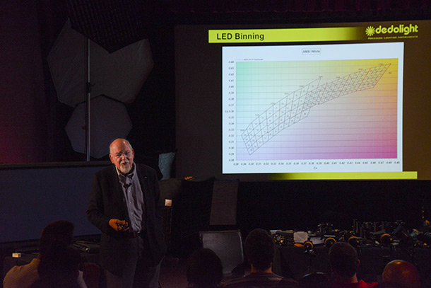 With a 3 hour seminar followed by a hands on lighting workshop in all three states, Dedo delved into some of the myths and non-truths about LED lighting technology and showed us his full range of focusable 100/150w classic lights, dedicated soft lights, projection attachments, Felloni LED panels, onboard LEDzilla lights and his brand new DLED range of focusing LED lights.