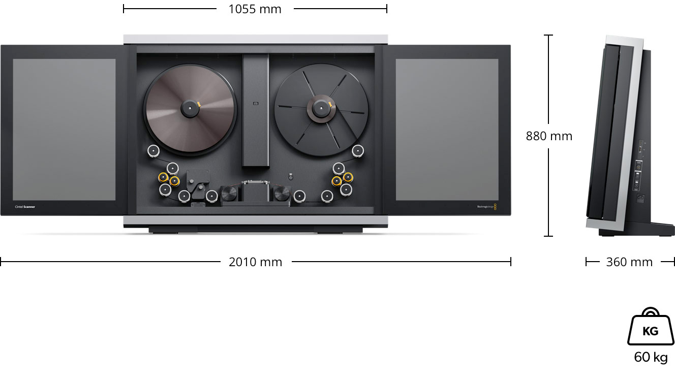 Cintel Scanners feature powerful built in Image Mill stabilization, a single 35mm HDR film gate (16mm purchased separately), two film spools, a set of four cleaning rollers, desk mount feet and DaVinci Resolve Studio software, which is used to operate the scanner. DaVinci Resolve also includes grain reduction, dust busting and dirt removal tools. The Blackmagic Design Cintel Scanner is a complete solution. There are no hidden installation fees, no software update fees, and no ongoing license fees. You may also transfer your scanner to another user absolutely free.