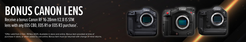 Capture breathtaking footage with Canon’s cutting-edge backside illuminated (BSI) stacked CMOS sensor, delivering next-generation capabilities, triple base ISO (800 / 3200 / 12800), organic colour reproduction, and 16 stops of dynamic range.