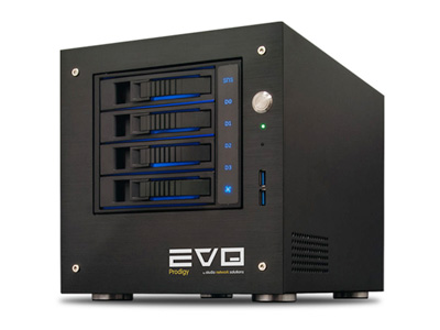 This compact system features a small and quiet desktop enclosure that accommodates four 2.5” or 3.5″ enterprise edition disks and is ideal for compressed workflows, mobile/field artists, and studios without rack space. The EVO Prodigy Desktop enables centralized network storage workflow, project sharing, and asset management for two user workgroups, and workstations can be directly connected to Prodigy — no Ethernet switch required.
