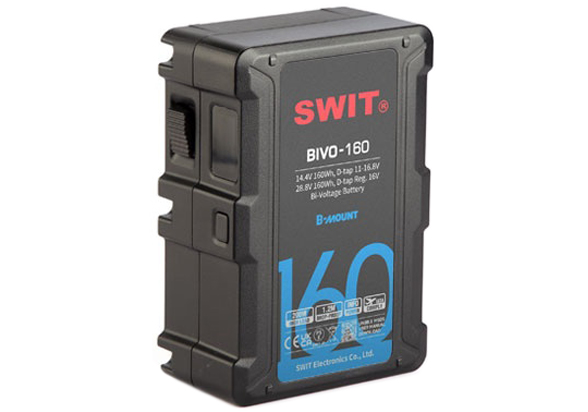 The BIVO-160 is a bi-voltage B-mount battery designed for ARRI cameras and various other compatible regular voltage cameras and cine gear. It offers 14.4V (10.8-16.8V) and 28.8V (22-33.6V) bi-voltage, and recognizes the ID pin resistor value of the B-mount plate to output 14.4V or 28.8V, without any misuse risks.