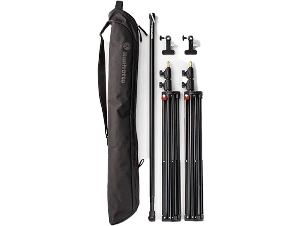 The Manfrotto 1314B is a comprehensive background support kit designed for professional studio and location photography. This versatile set provides a reliable solution for hanging paper or fabric backdrops, making it ideal for portraiture, product shoots, and content creation.