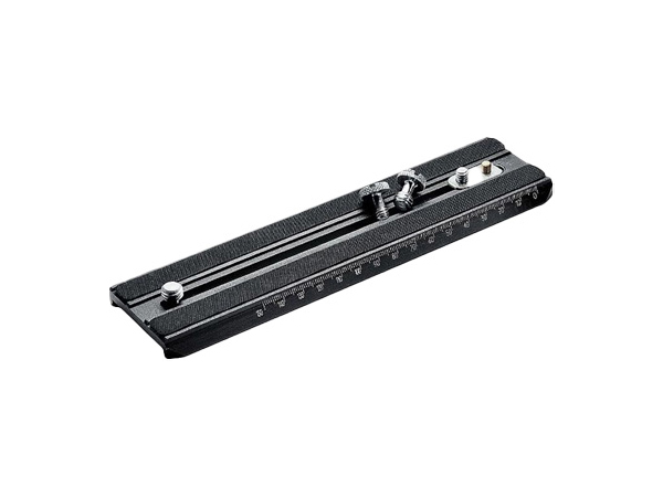 The Manfrotto 357PLONG is an extended sliding quick release plate designed to provide optimum balance for camcorders or digital cinema cameras with unusual weight distributions. This professional accessory is essential for videographers using long lenses or heavy battery packs who require precise fore and aft positioning on a tripod head.