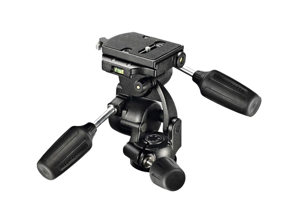 The Manfrotto 808RC4 is a robust three-way tripod head designed for precise framing and professional photography. It is ideal for studio work or landscape shooting where absolute stability and independent control over three axes are essential for the perfect shot.