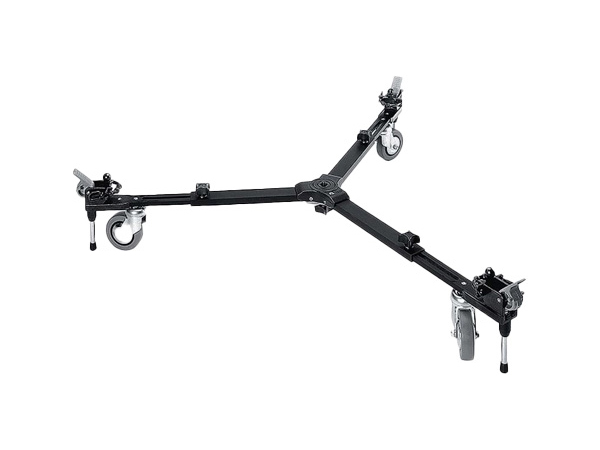 The Manfrotto 127VS Variable Spread Basic Dolly is a versatile accessory designed to provide smooth mobility for your professional tripod setup. It is ideal for studio environments or flat location surfaces where rapid repositioning of camera equipment is essential.