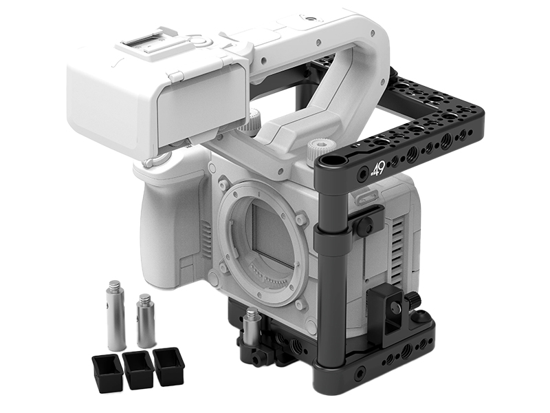 Upper Cage for Canon C50 is a form-fitting cage with 1/4-20, 3/8-16, and M4x20mm ARRI MAP threaded holes in several places.