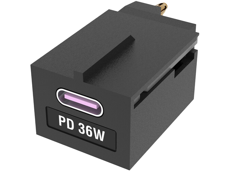 Charge compatible accessories using the USB-C Output Unit PD 36W for Mini PAGlink Batteries from PAG and a Gold or V-mount Mini PAGlink battery. This slide-in adapter connects in place of your battery's USB-A port and has a device-selectable 36W 5, 9, and 12V output.