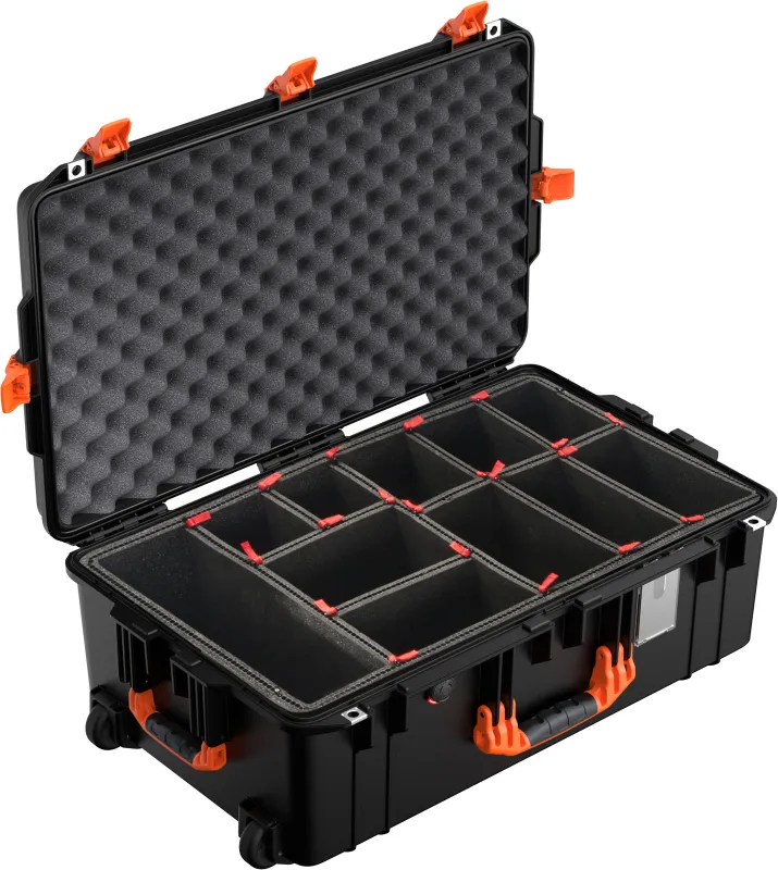 Pelican Lab 1595 Air Carry-On Case - TrekPak Dividers (Black w/ Orange Handles & Latches)